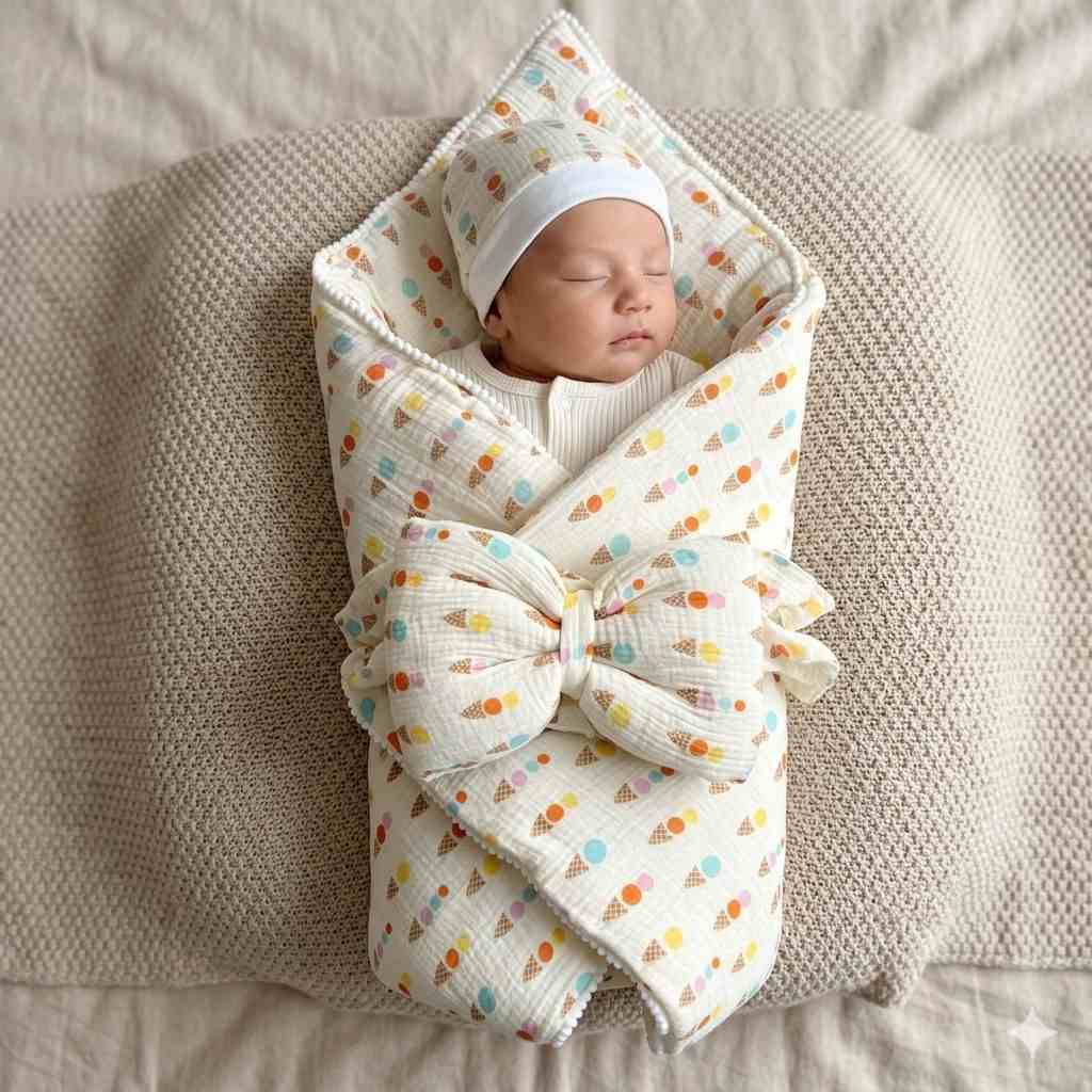 Sweet Scoops Cotton Baby Drape & Cap Set