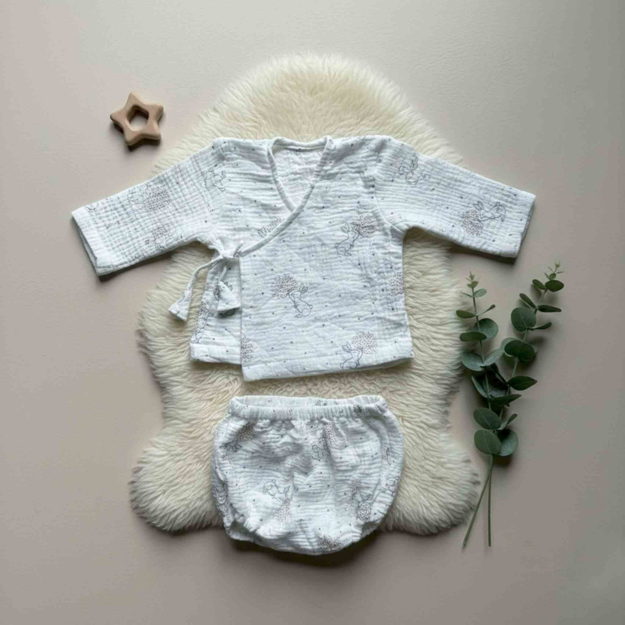 Little Hare Meadow Muslin Jhabla & Pants Set