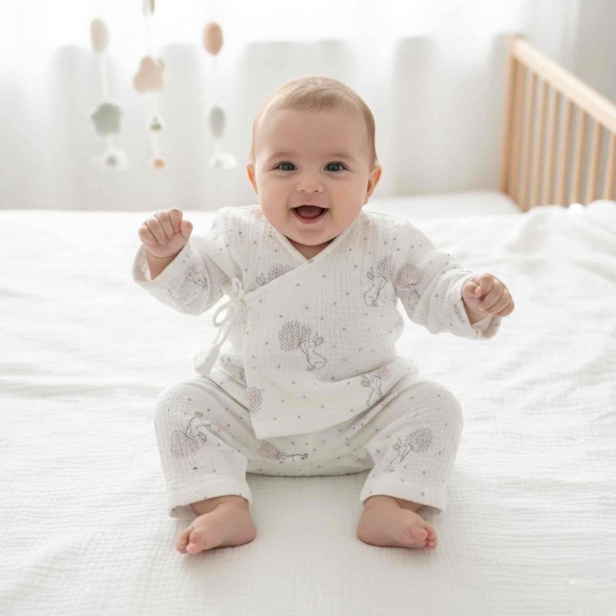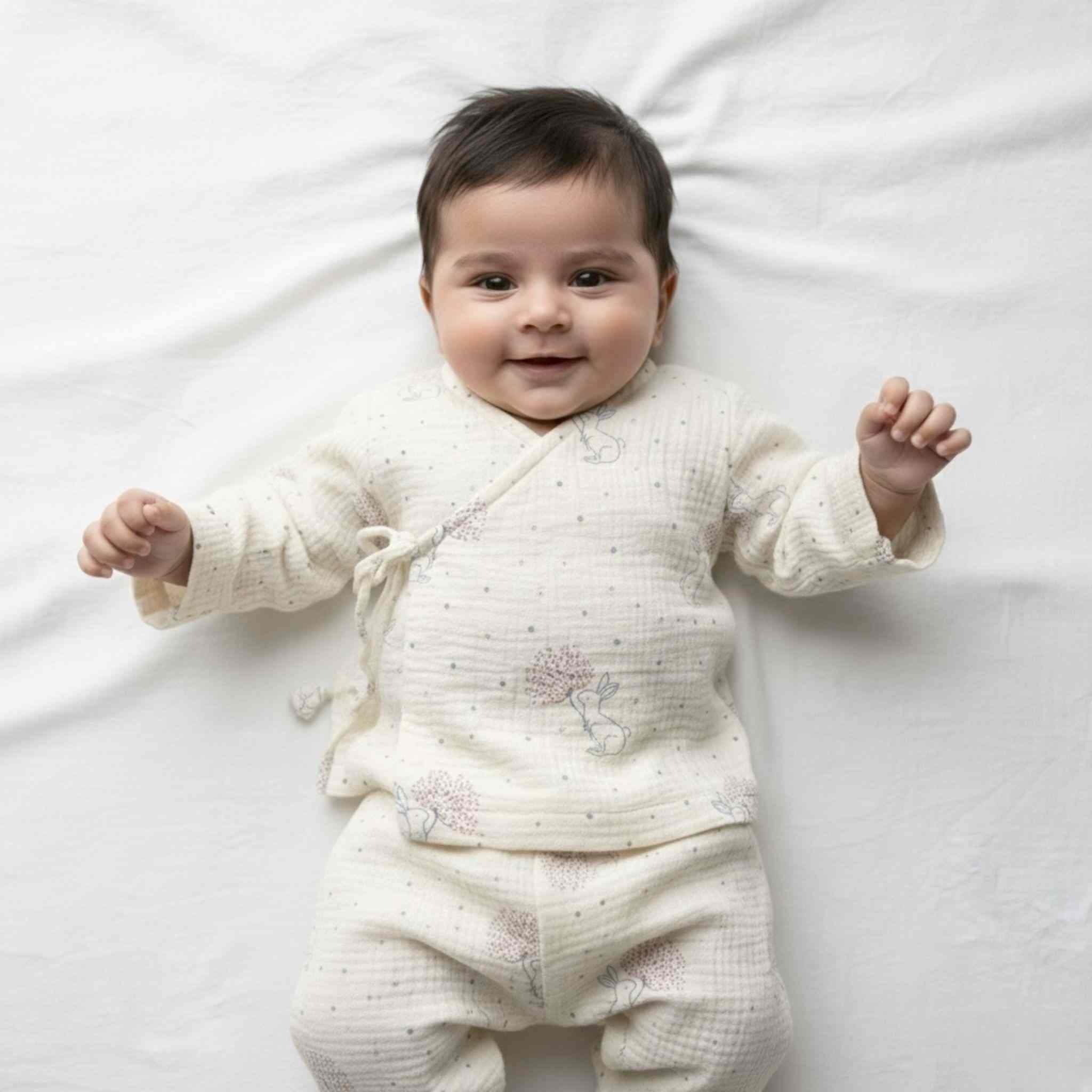 Honey Meadow Bunny Muslin Jhabla & Pants Set