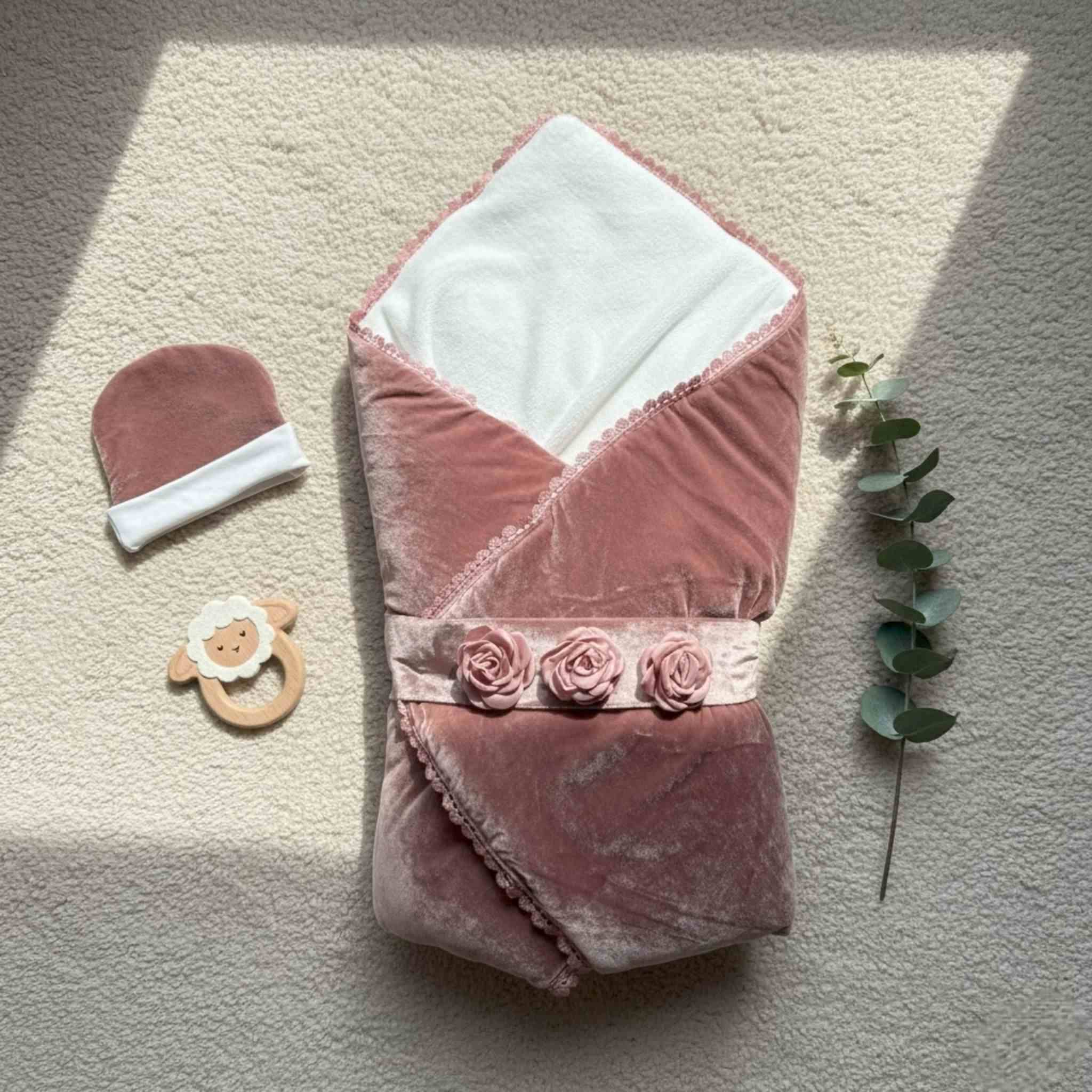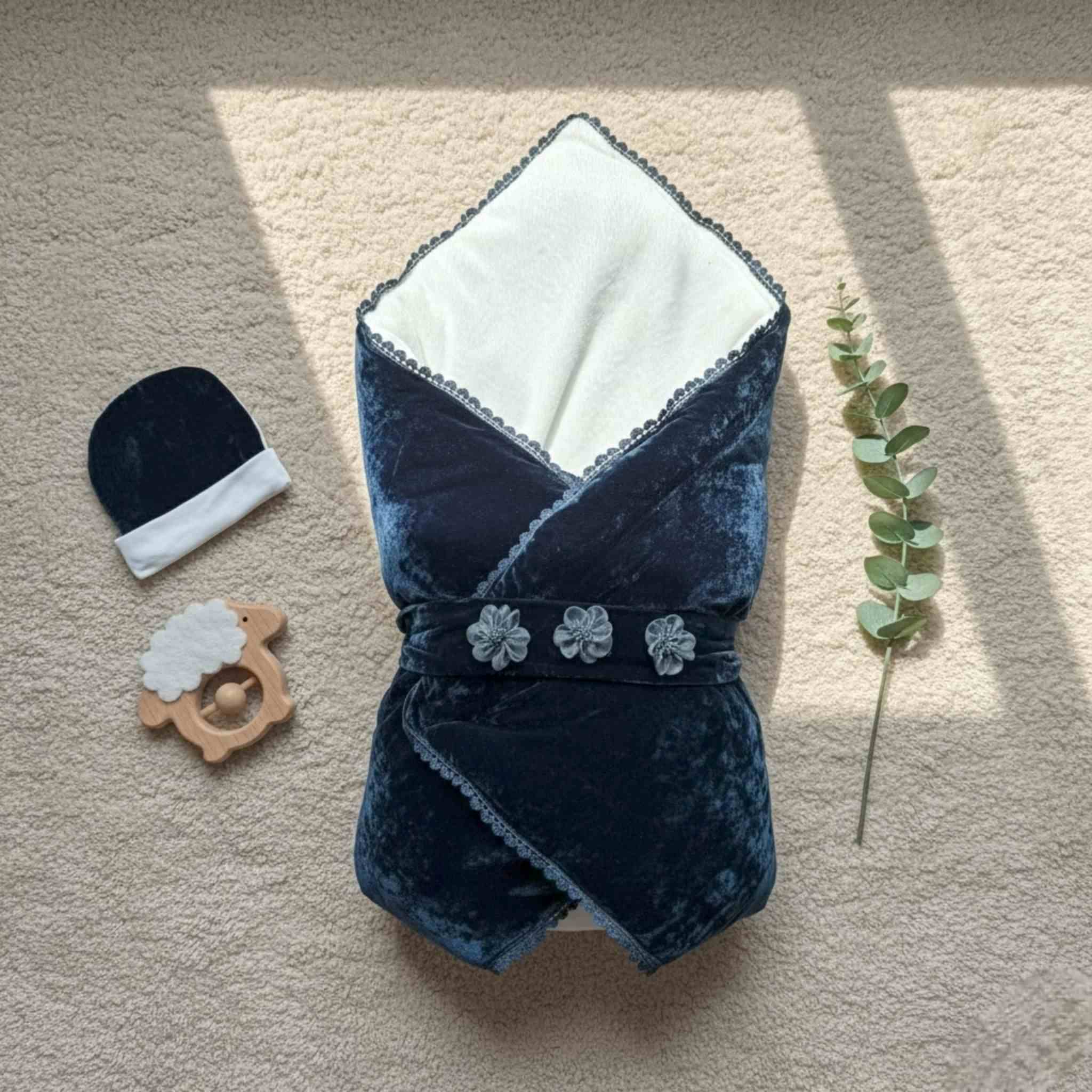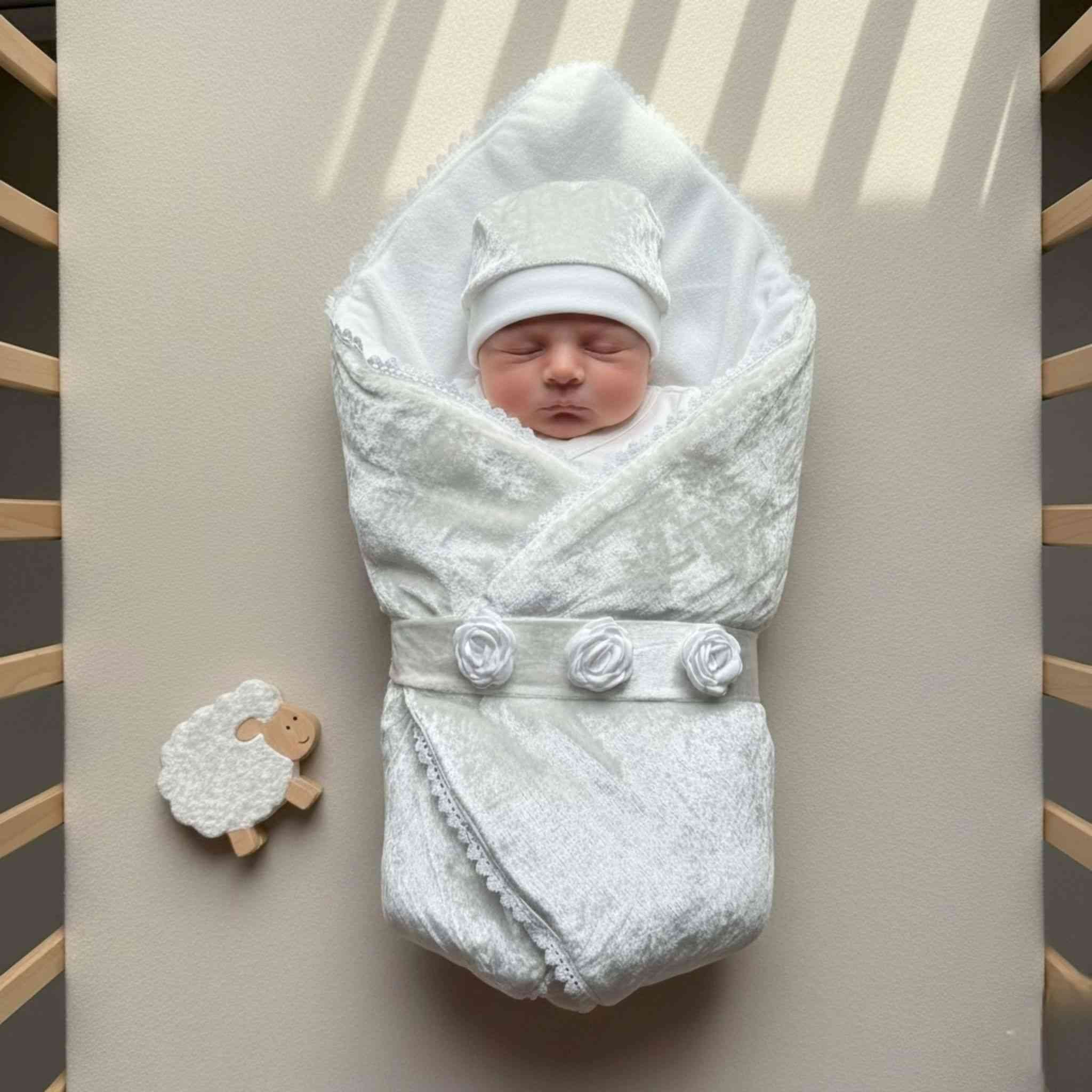 Ivory Luxe Velvet Winter Drape & Cap Set