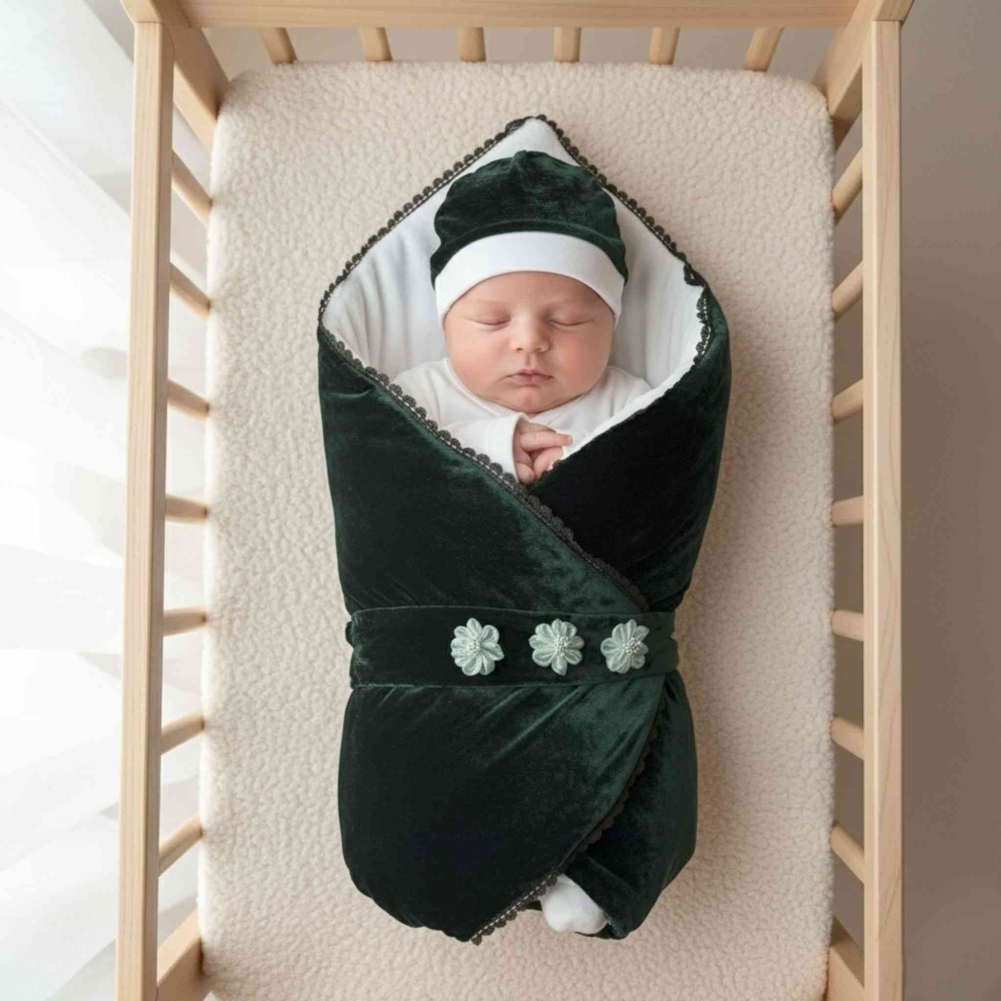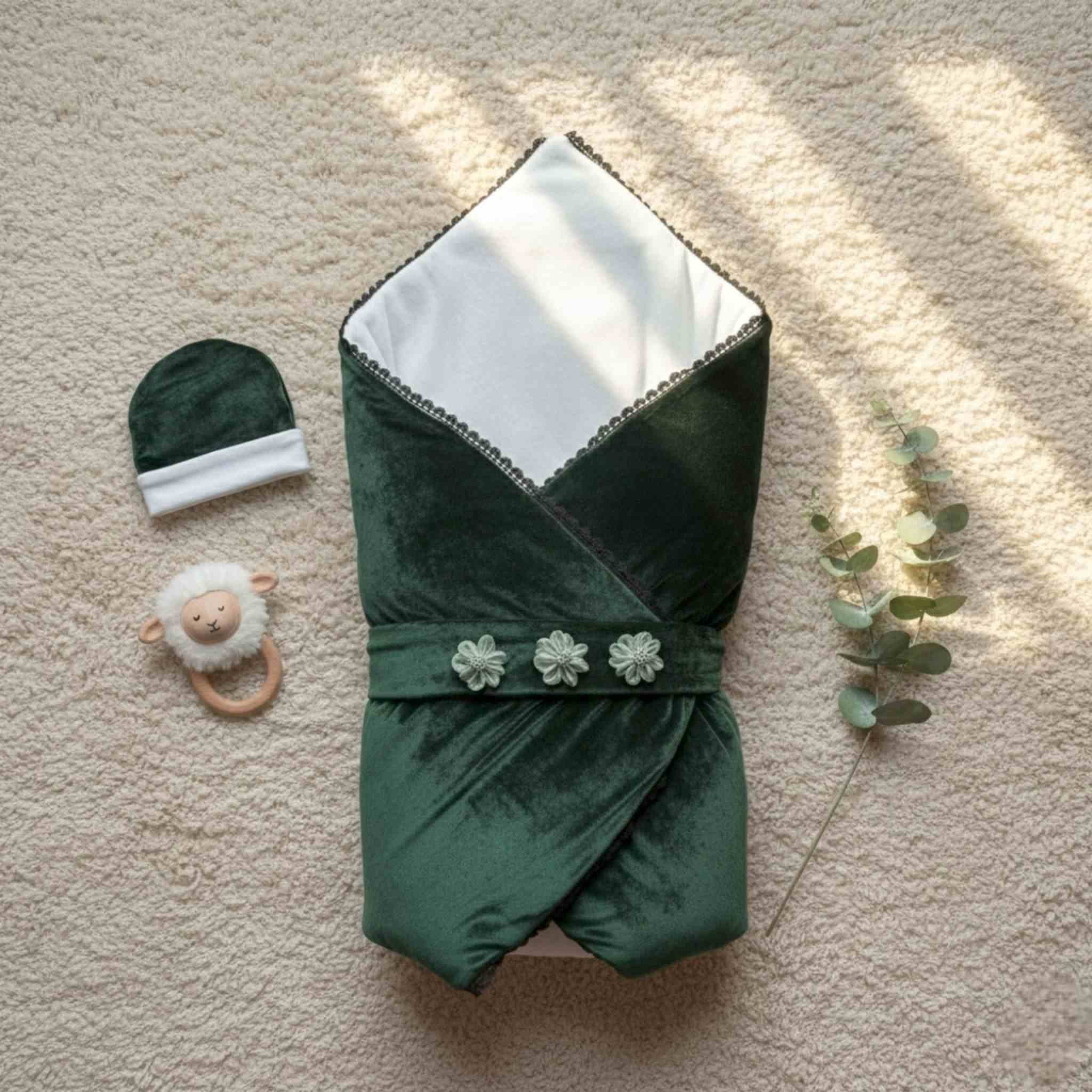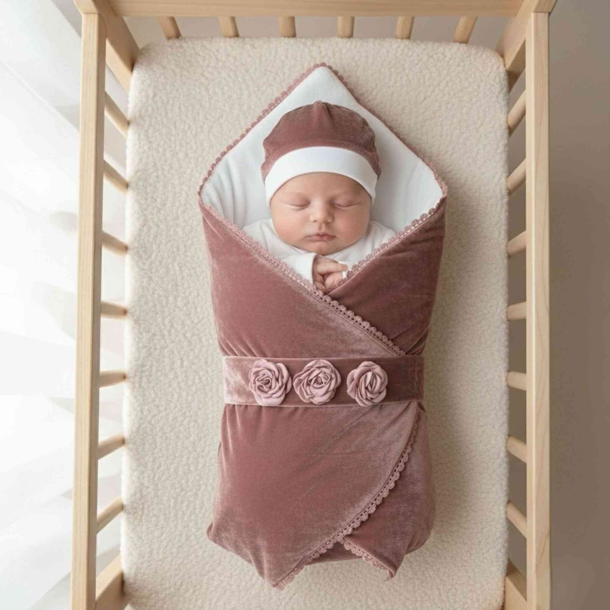 Ivory Luxe Velvet Winter Drape & Cap Set