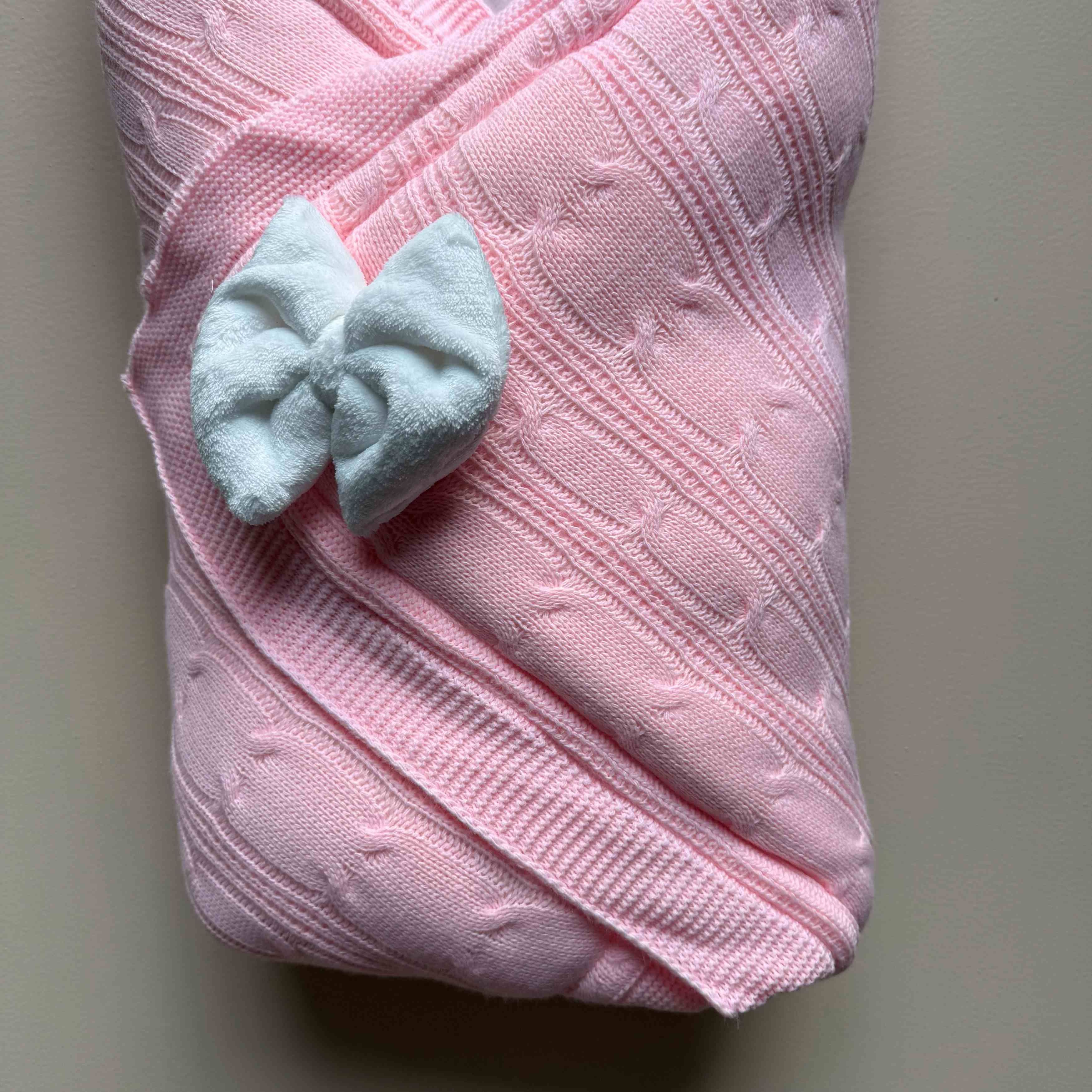 Wrap your little one in gentle warmth and timeless charm with our Blush Bow Knit Winter Baby Drape, thoughtfully designed for cozy winter days and peaceful naps.