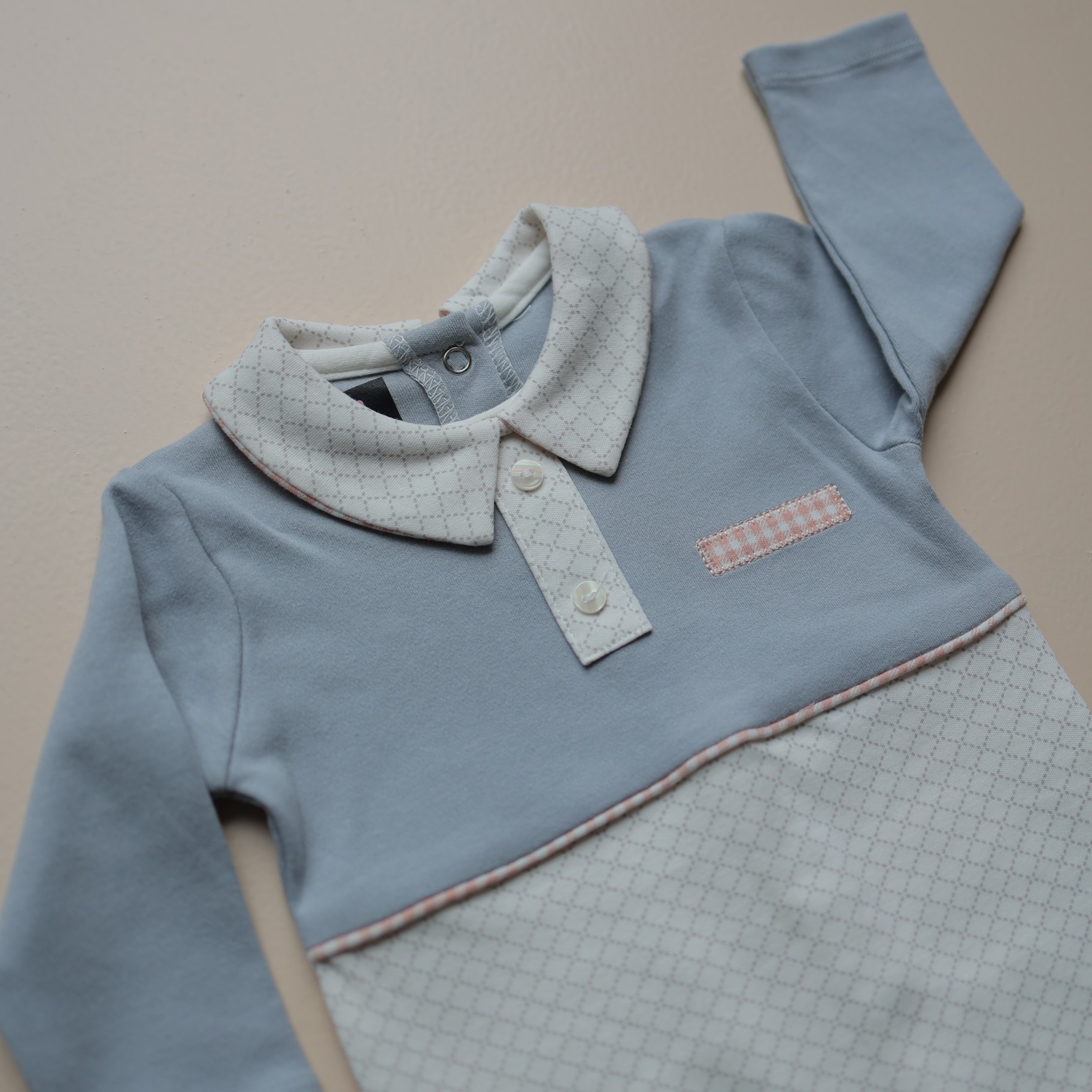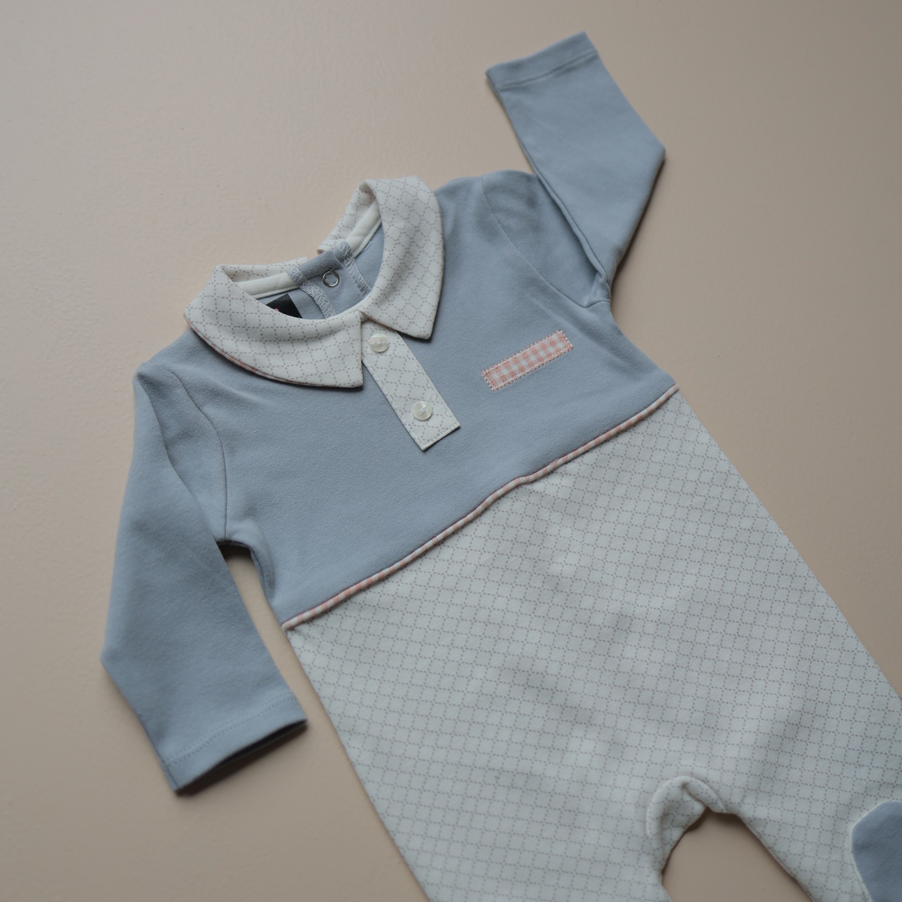 The smart collar with button detailing and a delicate check accent adds a touch of elegance, making it perfect for outings, special occasions , or cozy days at home. Gentle on delicate skin, this romper is as practical as it is adorable.