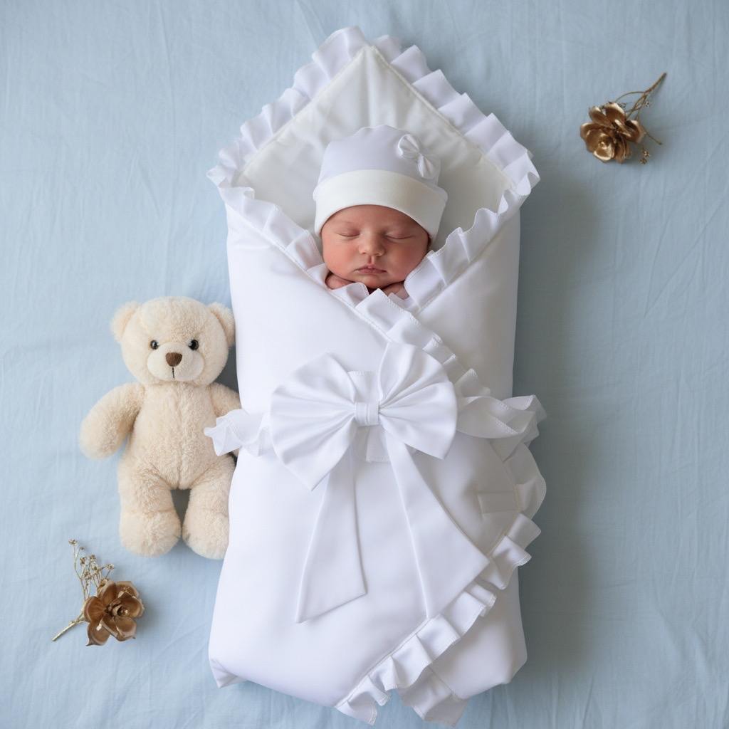 Introducing our Classic White Drape in pure white, a symbol of serenity and sophistication for your little angel. This Drape excudes timeless elegance. Lined with the softest pure cotton, it ensures your baby's comfort at all times. Accompanied by a matching cap, it effortlessly transforms into a cozy quilt for added warmth. Chic, versatile, and irresistibly snug- the classic white drape is the epitome of luxury for your baby's nursery.