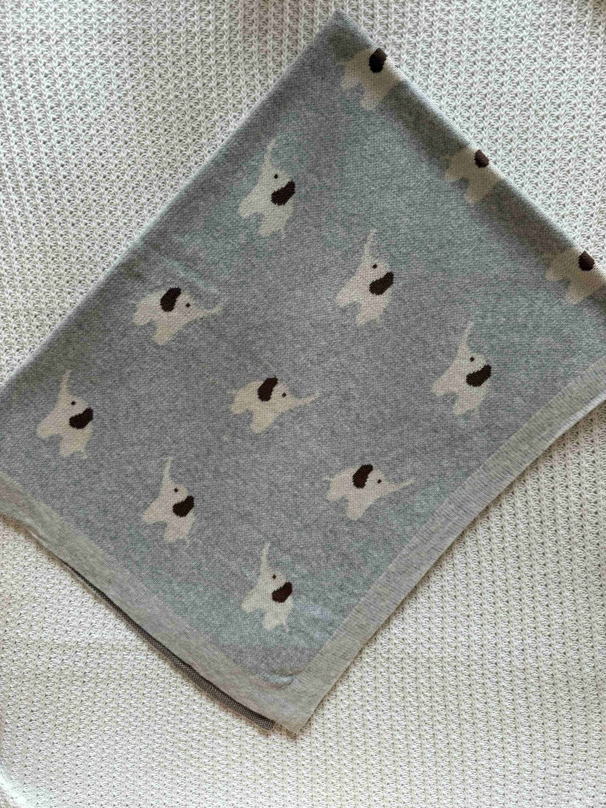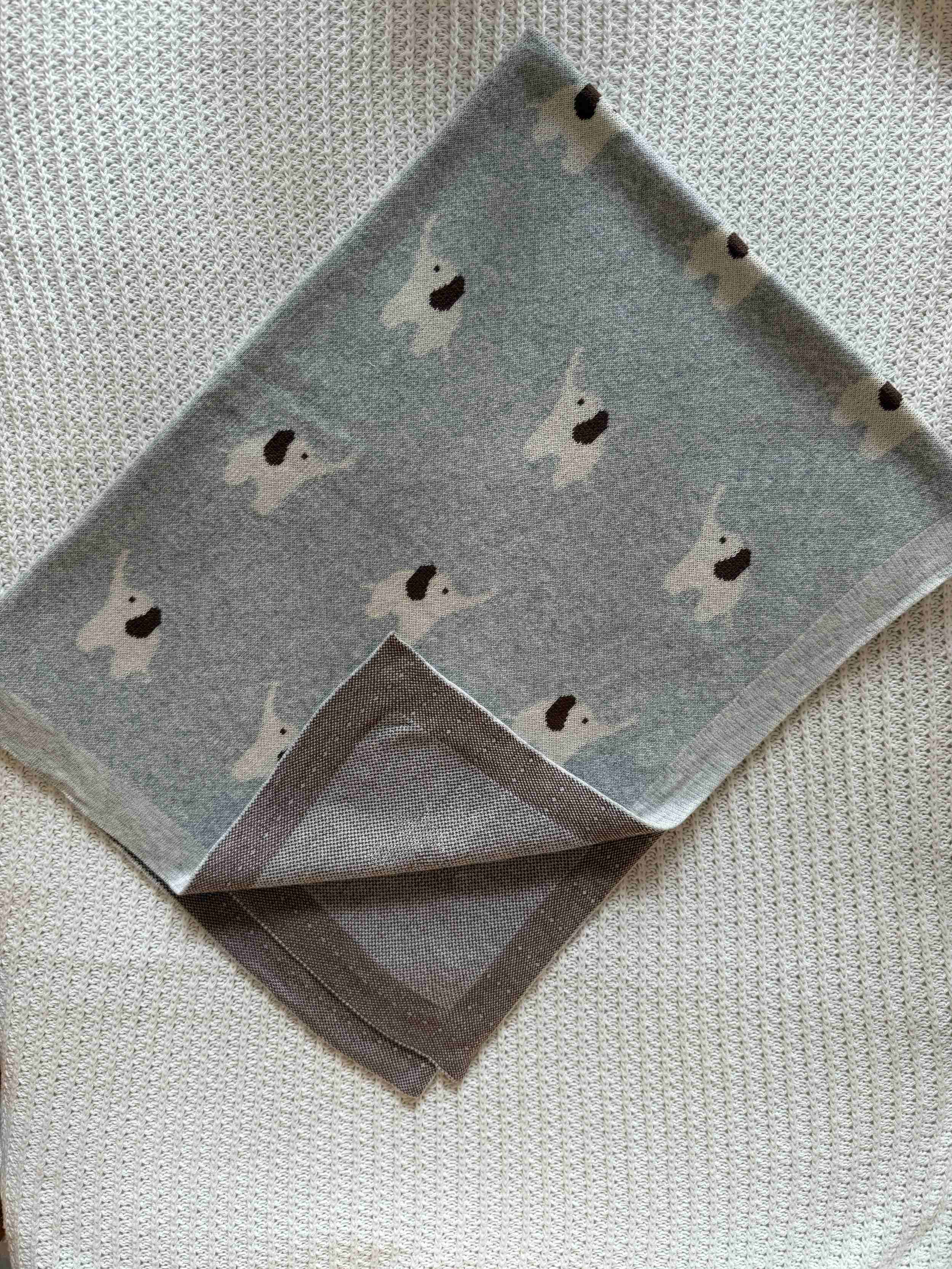 The blanket features a soothing grey base adorned with charming elephant motifs, creating a playful yet refined design. The delicate elephant print adds a touch of sweetness while maintaining a timeless and elegant aesthetic that fits beautifully into any modern nursery.