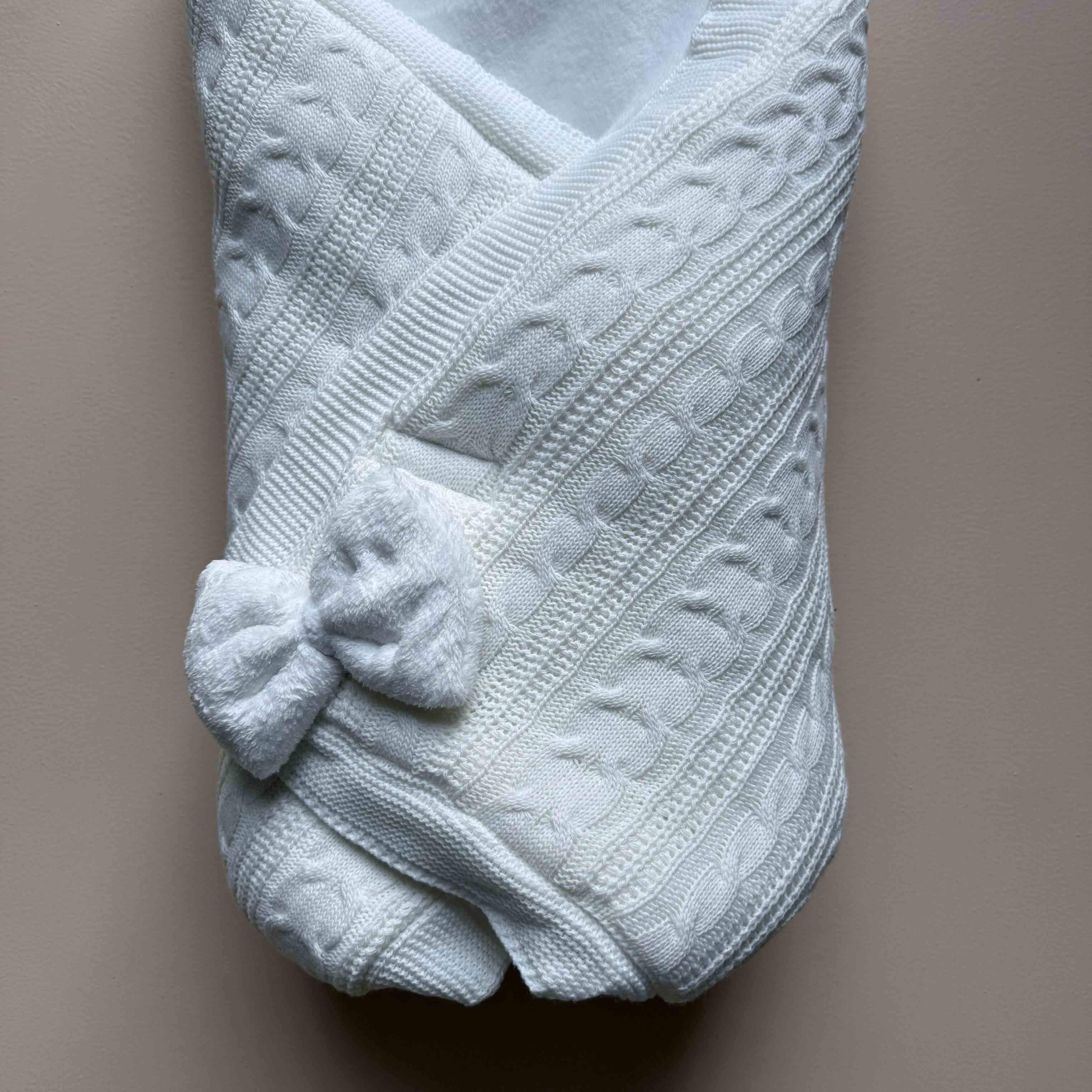 Finished with a subtle knitted bow detail, this drape adds a touch of charm and elegance—perfectly balancing practicality with timeless style.