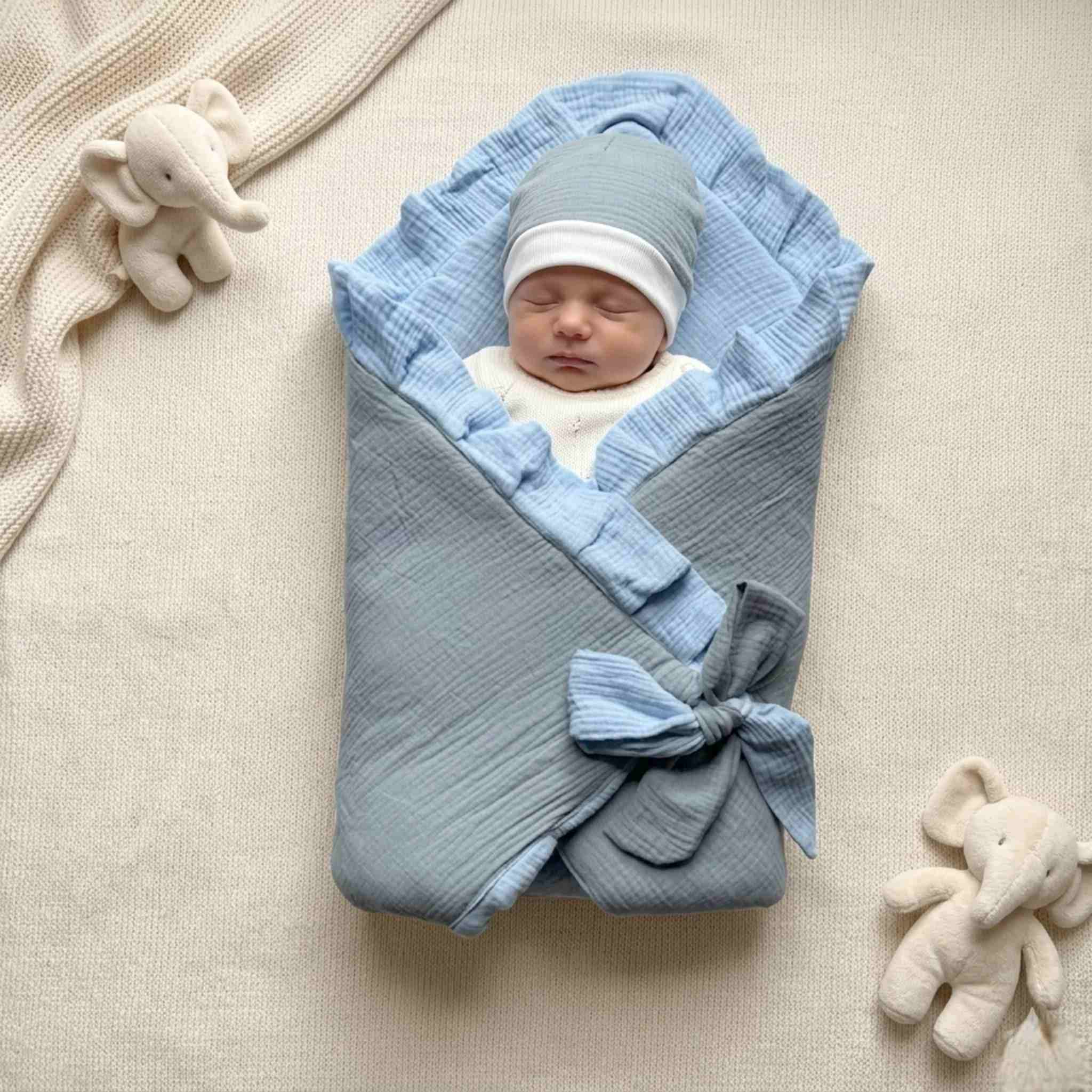 Crafted from 100% bamboo muslin cotton, this drape set is exceptionally soft, breathable, and kind to delicate newborn skin. The airy muslin weave allows for natural temperature regulation, ensuring your baby stays cozy without overheating.