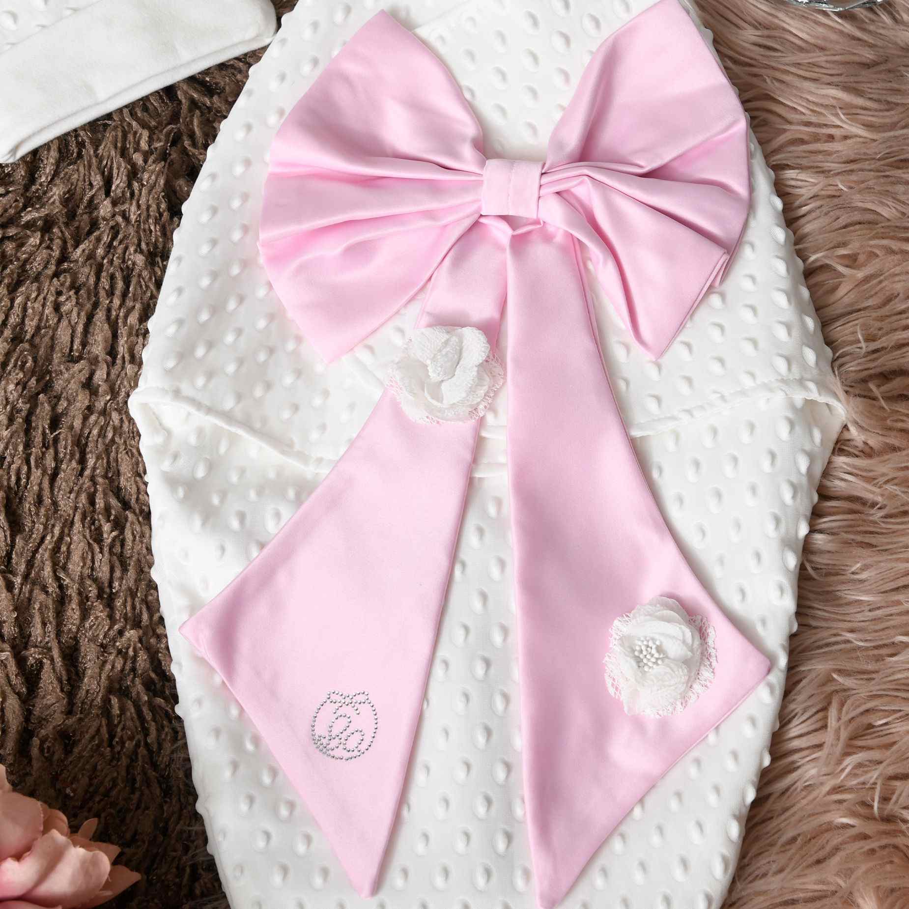Introducing our Flamingo Wrap with an adorning cap, that is a delightful blend of pure white serenity with soft baby pink accents. This enchanting wrap combines the timeless elegance of white with delicate white flowers and a charming bow in a lovely shade of soft baby pink. With a soft 100% cotton lining, it gently embraces your baby's delicate skin, while swaddling provides security and warmth and contrasting against the pristine white, the 100% satin bow creates a delightful and enchanting look. Your little one will exude a sense of innocence and charm, becoming a vision of grace that warms hearts and brings smiles.